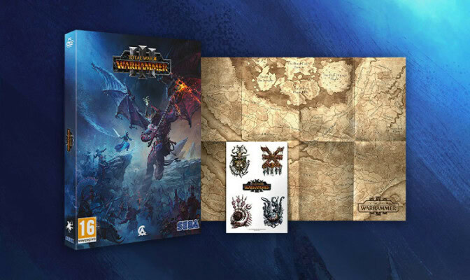 Pelin ohella keräilyversio sisältää kaksipuolisen julisteen, jonka yhdellä puolella on pelin kansitaidetta ja toisella kampanjatilan kartta. Lisäksi mukana on kaaosaiheisia tarroja ja digitaalinen Ogre Kingdoms Race Pack -lisäsisältöpaketti. Viimeksi mainittu tuo taistelukentille mahtavan uuden armeijan, joka lanaa vastustajat tieltään puhtaan massan ja silmittömän verenhimon voimin. Vastaamalla oikein oheiseen kysymykseen pääset mukaan arvontaan, jossa viisi onnekasta voittajaa nappaa pelin itselleen!