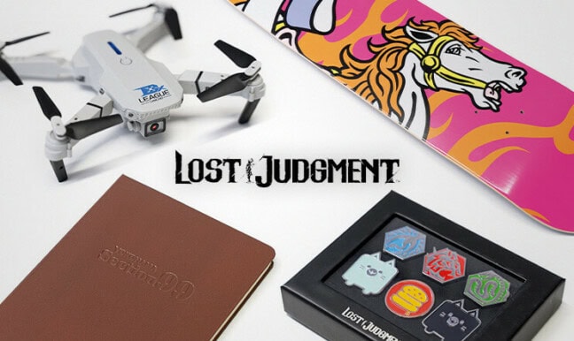 Marraskuun kilpailu on käynnistynyt! Palkintona Lost Judgment -tuotepaketti, joka sisältää täysin toimivan pienoiskopterin, tyyliä tihkuvan skeittilaudan, Yokohama Section 99 -etsivätoimiston logolla koristellun muistikirjan ja kuusi teemaan sopivaa pinssiä.
