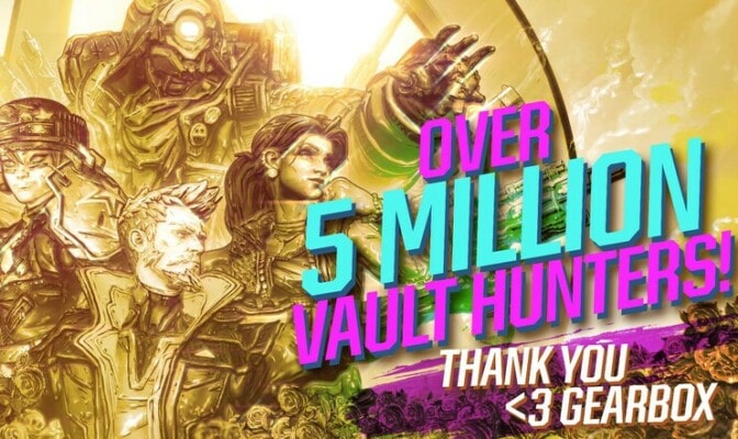 Syyskuun 13. päivä kauppoihin ilmestynyt Borderlands 3 on yltänyt maailmalla reilun viiden miljoonan kappaleen toimituksiin, julkaisija 2K Games on vahvistanut.