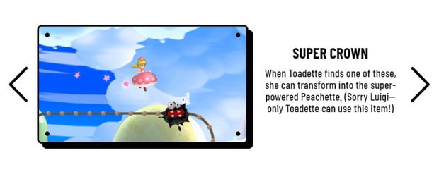 Nintendo on nyt linjannut Super Mario U Deluxen virallisilla sivuilla, ettei kukaan muu kuin Toadette voi käyttää hyödykseen superkruunua. Mielenkiintoisena yksityiskohtana pelin kotisivut eivät lopeta kuvausta pelkästään vain tähän, vaan pahoittelevat asiasta vielä kaikista mahdollisista hahmoista Marion velipoika Luigia.