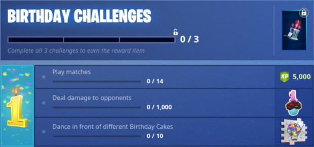 Battle Royale -puolella tapahtuma lisää peliin kolme ylimääräistä haastetta, joista haltuunsa sai voi saada ylimääräisiä kokemuspisteitä ja synttäriaiheisia koriste-esineitä. Save the Worldia -pelaaville annetaan vuorostaan suoritettavaksi synttäriteemainen tehtäväkokonaisuus, josta palkitaan uudella sankarilla.