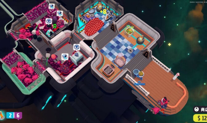 Out of Spacessa pelaajat pääsevät ratkomaan yhteistyössä avaruusaluksensa ylläpitämiseen liittyviä haasteita. Sekä paikallisesti että verkossa pelattavassa pelissä päästään sekä sisustamaan että puolustautumaan avaruuden muukalaisia vastaan.