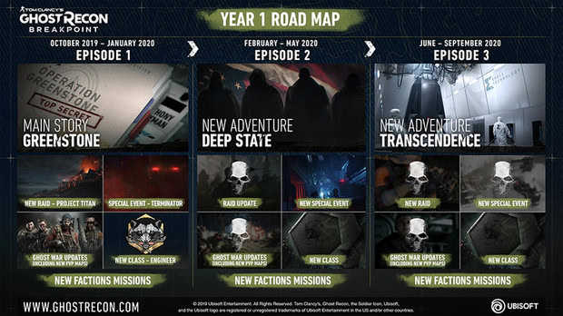Pelin laajeneminen tapahtuu ensimmäisen vuoden aikana kolmeen episodiin jaettuna, joista ensimmäinen käynnistyy heti lokakuussa. Jokaiseen neljä kuukautta kestävään episodiin kuuluu osaksi niin päätarinaa jatkava uusi seikkailuoperaatio, pelin eri ryhmittymiä syventävä tehtäväsetti, moninpelilisäyksiä, erikoistapahtumia, uusia hahmoluokkia sekä hajanaisia muita lisäyksiä.