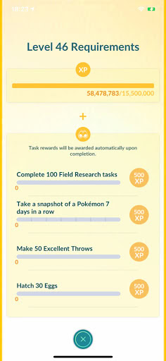 Oman muutoksensa kokevat myös pelin tasot, joiden katto kohoaa ensimmäistä kertaa Pokémon GOn historiassa. Uusi raja tulee vastaan levelillä 50, mihin pääseminen ei tapahtu pelkillä kokemuspisteiden keruulla. Tasoja noustaan suorittamalla nimittäin niille keskeisiä tutkimushaasteita, jotka voivat vaatia esimerkiksi taistelemista kuin oman kumppanipokémonin huolenpitoa.