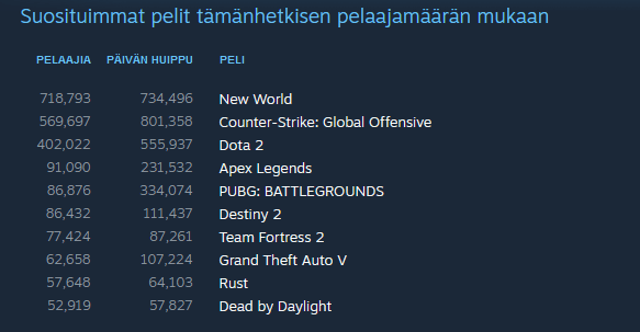 Amazonin useaan otteeseen lykkääntynyt massiivimoninpeli New World saapui vihdoin ulos tiistaina ja vieläpä melkoisen vastaanoton saaneena. Jo julkaisupäivänään kolonialistiseikkailu rikkoi 700 000 yhtäaikaisen pelaajan rajapyykin ja on istunut vastaavilla lukemilla vielä päivää myöhemminkin Steamin suosituimpana pelinä vakiosuosikkien Counter-Strike: Global Offensiven ja Dota 2:n edellä.