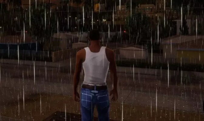GTA: The Trilogyn sade ilmenee paksuina valkoisina viivoina, jotka häiritsevät näkyvyyttä pahemman kerran. Veden päällä sade puolestaan katoaa kokonaan näkymättömiin. GTATrilogyMods on ladannut jo ratkaisunsa Patreoniin, mutta siihen käsiksi pääseminen vaatii seuraavan korjausversion tilaamista.