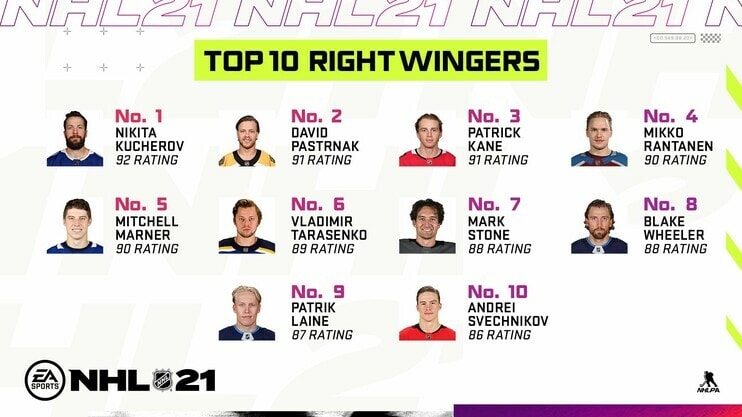 EA Sports on valmistautunut jälleen uuden NHL-pelin julkaisuun julkistamalla pelinsä korkeimmalle rankatut virtuaalipelaajat. Tänä vuonna pelaajien parhautta esiteltiin niin yleisellä top 50 -listalla niin kuin myös erottelemalla erikseen vielä eri pelipaikkojen kärkikymmeniköt.