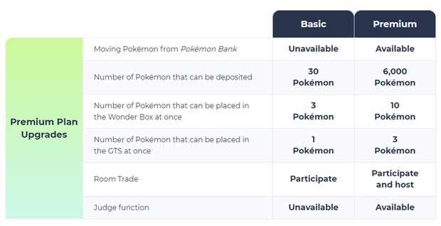 Pokémon Homea on mahdollista käyttää sekä rajatun perusjäsenyyden että maksullisen Premium-jäsenyyden kautta. Maksulla käyttöönsä saa esimerkiksi enemmän talletustilaa ja juurikin kytköksen Pokémon Bankiin. Homen jäsenyys maksaa noin 3 euroa kuussa tai sitten vaihtoehtoisesti 5 euroa kolmen kuun osalta tai 16 euroa koko vuodelta.