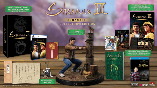 Peli saa perusversion ohella fyysiset Special Edition– ja Collector’s Edition -painokset, jotka ovat jo ennakkotilattavissa. Special Edition sisältää peruspelin ohella konseptitaidetta esittelevän taidekirjan sekä Blu-ray-dokumentin Shenmue-sarjan luoneesta Yu Suzukista.