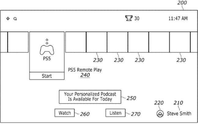 Kuvatussa skenaariossa pelaaja käynnistää konsolinsa ja näkee aloitusnäytöllä “Tämän päivän personoitu podcastisi on nyt saatavilla” -viestin. Kyse ei olisi Video Games Chroniclen mukaan kaikille käyttäjille jaettavasta valmiista podcastista, vaan jokaiselle pelaajalle yksilöllisestä sisällöstä, joka perustuisi siihen, mitä hän on pelannut.
