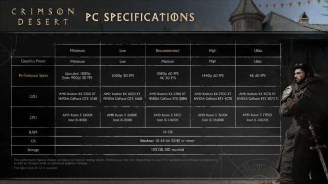 Pearl Abyssin kehittämän ja tällä viikolla ilmestyvän Crimson Desertin PC-laitteistovaatimukset on julkistettu.