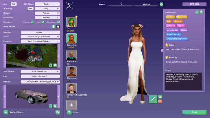 Life by You julkaistaan Steamissa ja Epic Games Storessa 4. kesäkuuta. Life by Youn luvataan erottuvan elämäsimulaatiolajityypin muista peleistä vapaammilla luomistyökaluilla, joiden avulla pelaajat voivat rakentaa hahmot ja heidän elämäntarinansa juuri haluamansa näköisiksi.