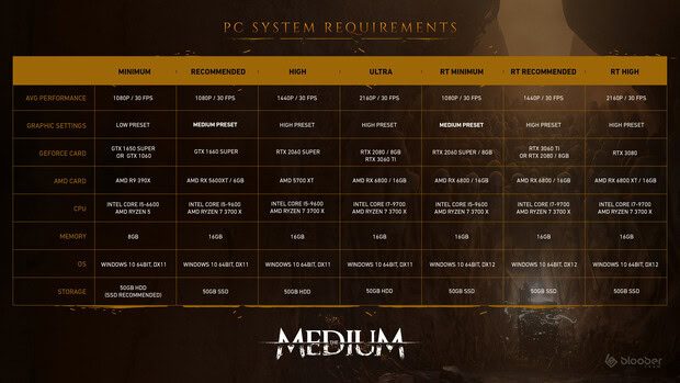 Tällä viikolla julki on saatu myös päivitetty lista The Mediumin laitevaatimuksista. Hienosäätöjen ohella tuore lista antaa yksityiskohtaisemman kuvan siitä, mitä kaikkea peli vaatii pc:ltä missäkin olosuhteissa.