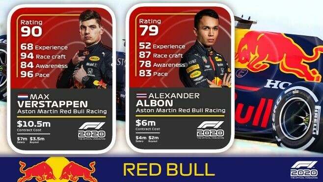 Bottaksen rinnalle asettuu Red Bullin alankomaalaislupaus Max Verstappen myöskin 90 pisteen yleisluokituksella. Tämän suurimmaksi arvoksi on nostettu nopeus ja ohituskyky, kun taas kokemusta piisaisi vielä kerättäväksi. Red Bullille kesken viime kauden siirtyneellä Alex Albonilla piisaa myös vielä näytettävää, vaikka ohituskyky on tälläkin toki jo melkoinen.