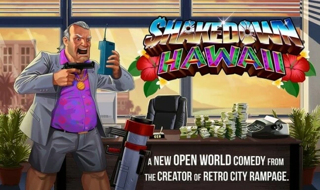 Tarjolla Shakedown: Hawaiissa on lintuperspektiivistä kuvattua avoimen maailman toimintaa, jota hämmennetään muutamilla tiiviimmillä toimintakohtauksilla sekä kepeillä liiketoimintamahdollisuuksilla. Pelimaailmasta on mahdollista hankkia nimittäin yrityksiä omaan haltuunsa ja maksimoida sitä kautta tuottojen saanti. Joskus kilpailijoita täytyy hieman käydä myös ravistelemassa.